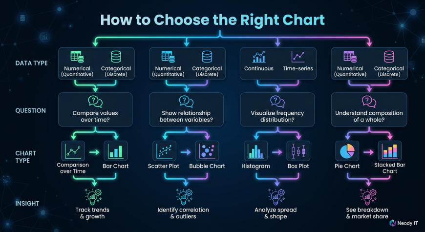 At Neody IT, we emphasize that visualization is not just about creating charts. It is about communicating insights effectively. Choosing the right chart is the first step toward becoming a skilled data analyst.